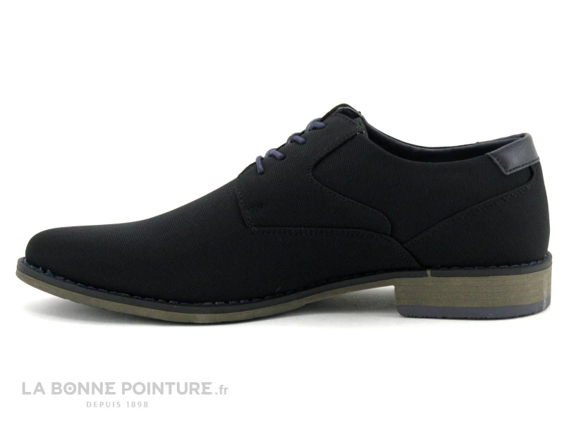 Cette chaussure basse Homme Broker and Co est noir mat aspect finement gaufré, avec un peu de bleu marine à l’arrière et sur les côtés.