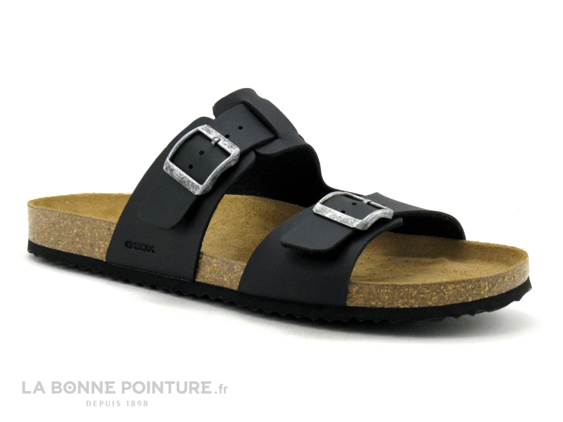 Cette mule Homme est toute noire, avec de larges brides qui permettent d’ajuster idéalement la chaussure Geox Ghita à votre pied.