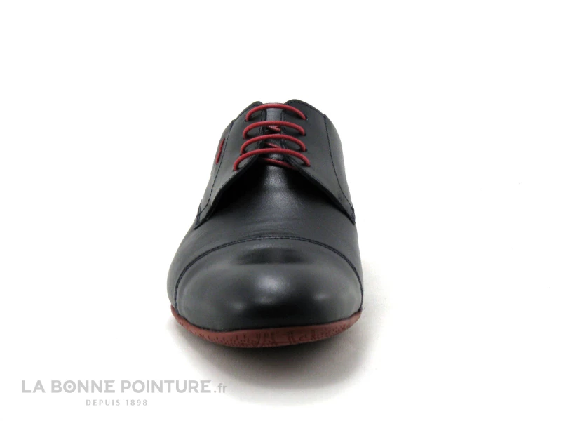 Cette chaussure habillée Homme est en cuir bleu marine foncé, avec un peu de rouge terracota au niveau de l’encolure.