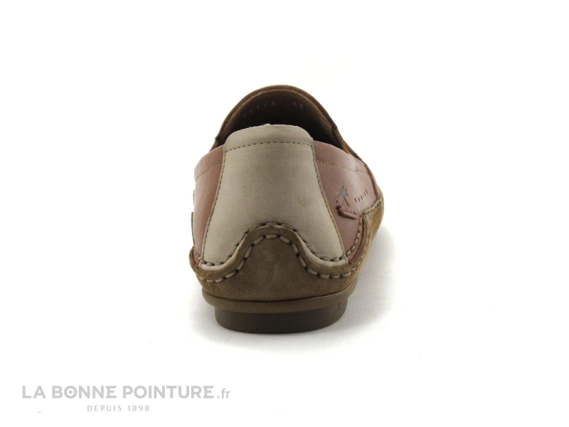 Ces mocassins Homme Fluchos Dorian F1174 sont en cuir souple marron camel, avec le contrefort en cuir beige.