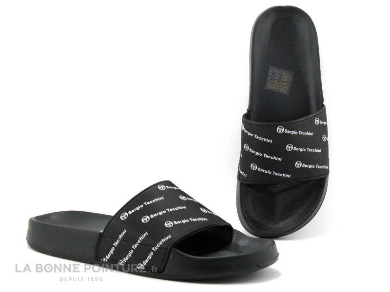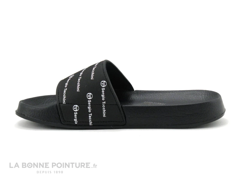 Ces claquettes Homme Sergio Tacchini STM119005 sont noires avec la marque imprimée en blanc sur le dessus.