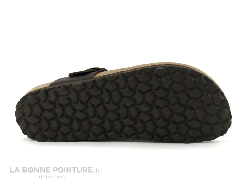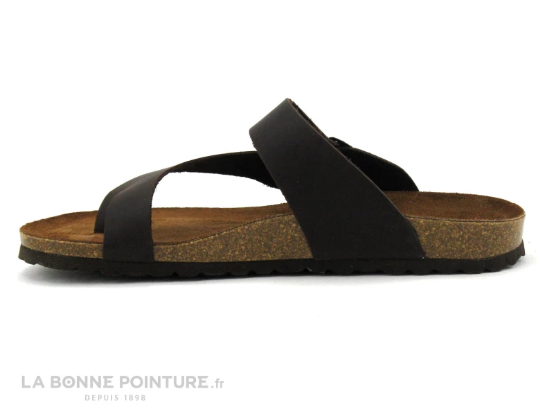La tong homme Inter Bios bénéficie d’une large bride encuir velouté très souple marron foncé qui enveloppe l’ orteil.