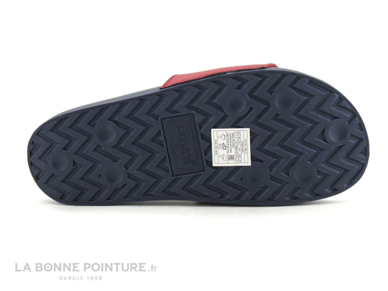 Ces claquettes Homme Levi’s sont bleu marine et rouge, avec la marque Levi’s® inscrite en rouge sur fond blanc sur le dessus.