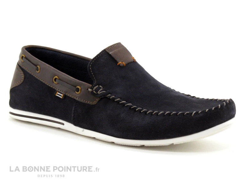 Les chaussures bateau Homme en nubuck bleu marine Point d’Orgues Fabio, des mocassins souples à petit prix !