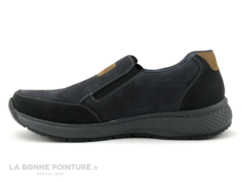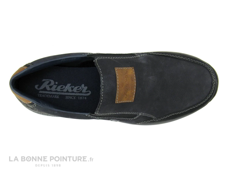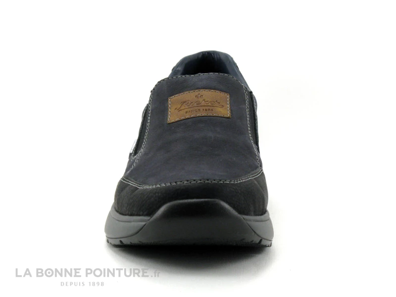 Ce mocassin Homme Rieker est bleu marine avec les extrémités noires et une petite touche de marron camel.